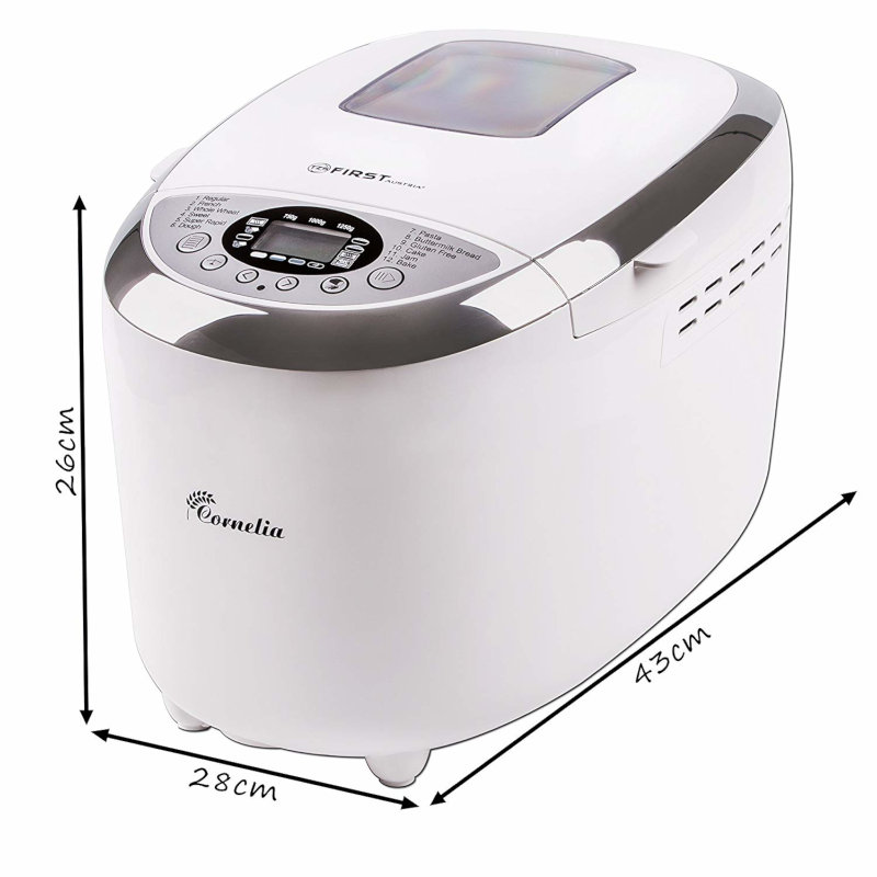 Pergatisni buken ne komoditetin e shtepise suaj. Konsumoni buke te ngrohte dhe te sapobere me beresin e bukes First Austria. ëë Kapaciteti: 1250g ëë Ekran LCD ëë Fuqia: 850W ëë Nuk ngjit ëë Pesha: 7.8kg