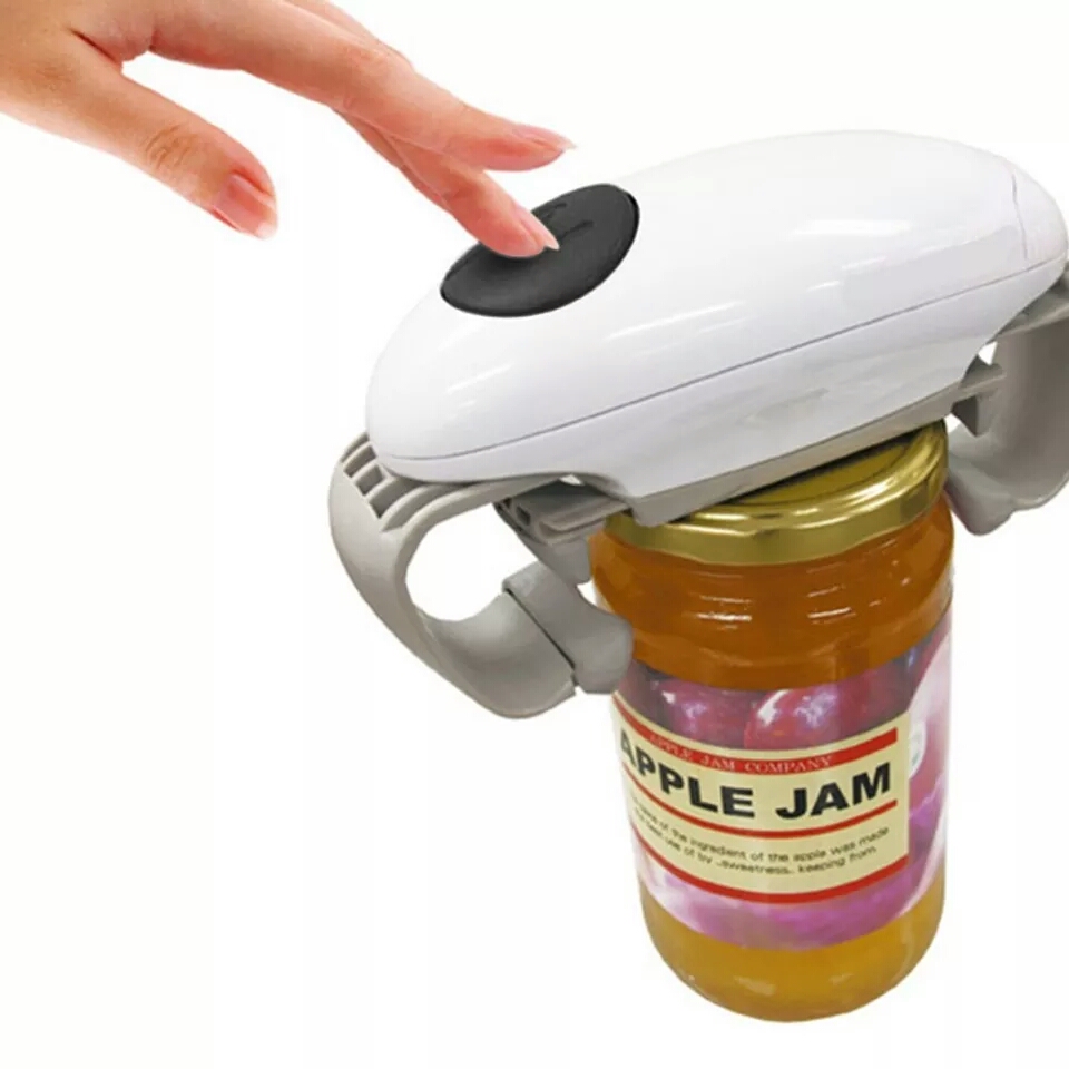 - Thjesht vendosni produktin në majë të kavanozit, shtypni butonin dhe kanace do të hapet për sekonda.