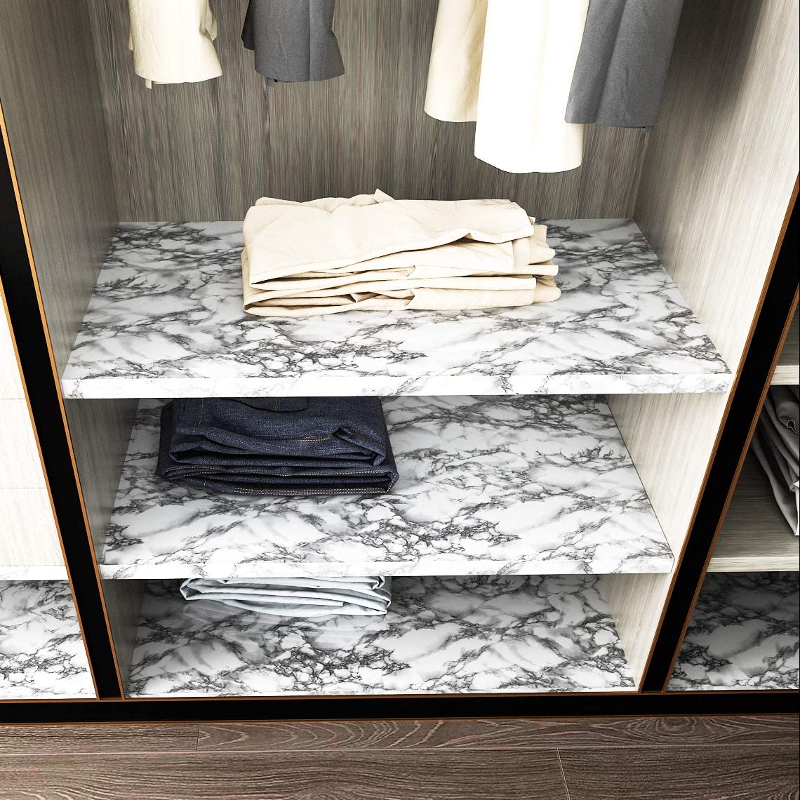 - Letër ngjitëse imitim mermeri me dy ngjyra e badhë dhe e zezë.